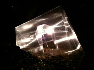 During the reconstruction of the French Embassy in Tokyo, it was opened to the public in the form of an exhibition. During this reconstruction, I built a transparent house on land subject to extraterritoriality, meaning a place where the laws of the host country do not apply, but where the laws of the embassy's country do. The transparency of this work emphasizes the relationship between public and private space. It is a transparent house, half-buried in the ground, with lamps inside that flicker like a heartbeat. Here, two nations intersect, as do the private and the public.
